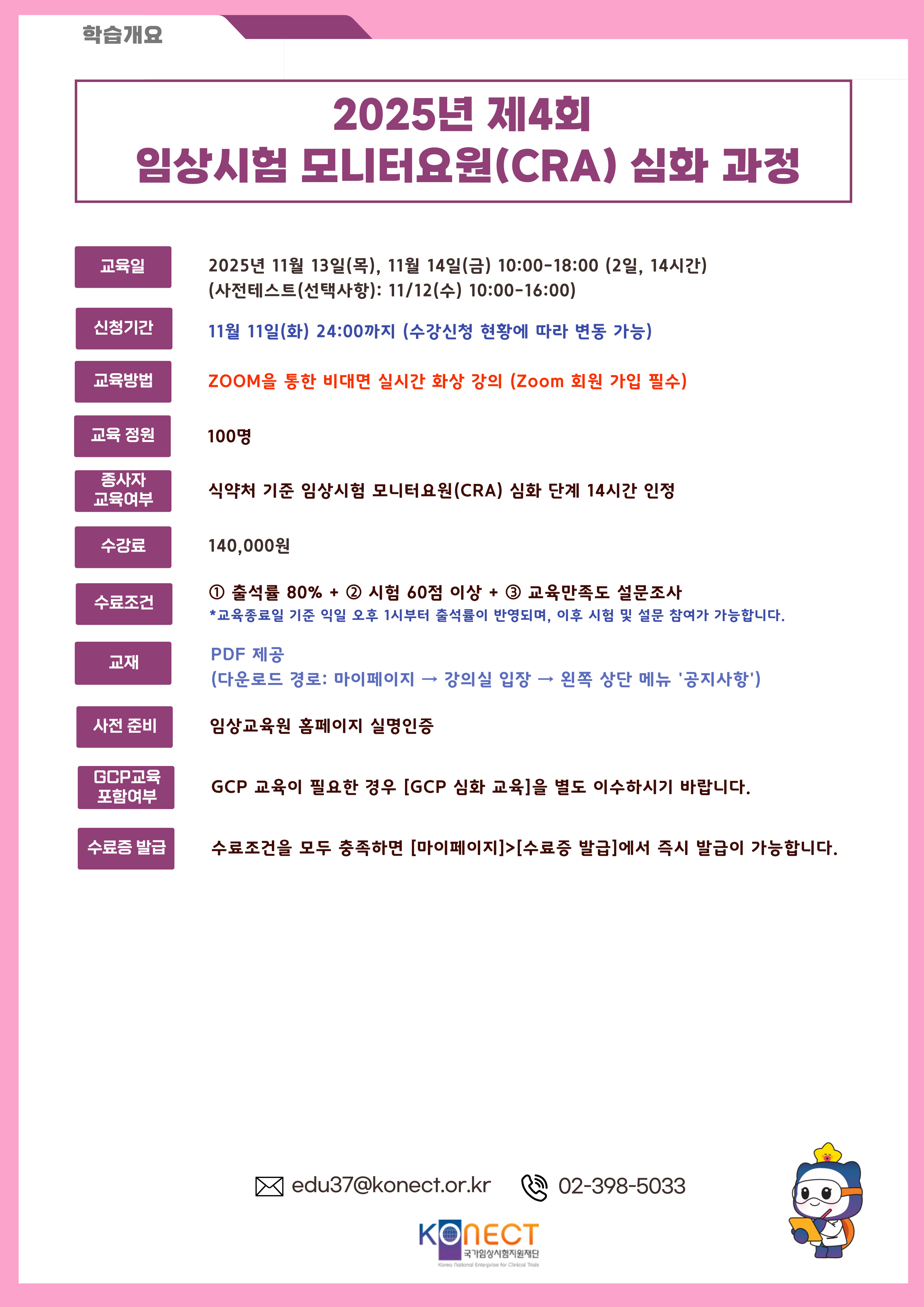 제4회 임상시험 모니터요원(CRA) 심화 과정_설문 |