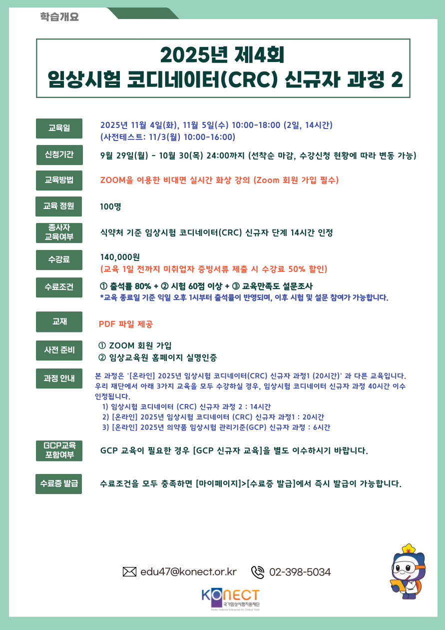 (시험) 제4회 임상시험 코디네이터(CRC) 신규자 과정 2 |