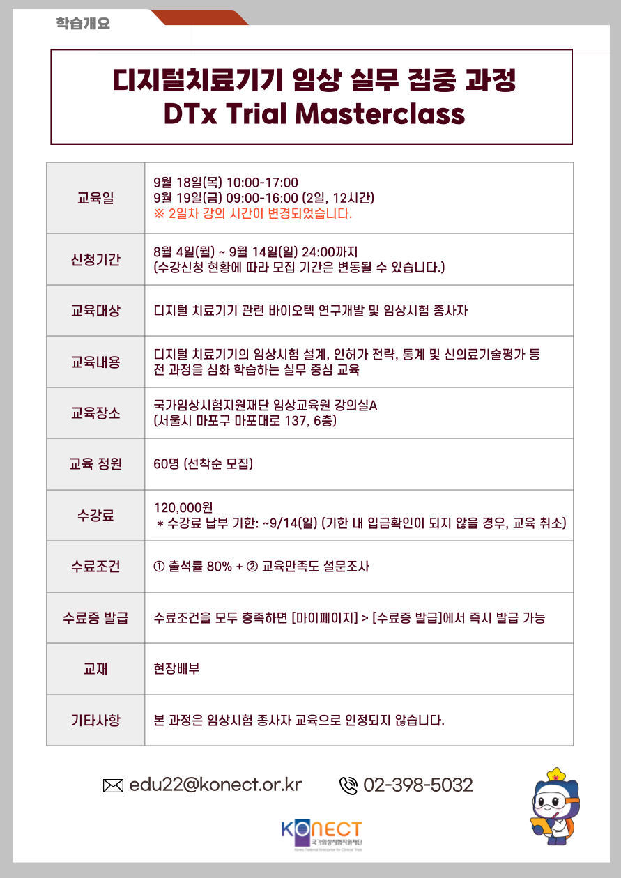 디지털치료기기 임상 실무 집중 과정 - DTx Trial Masterclass_1일차 |
