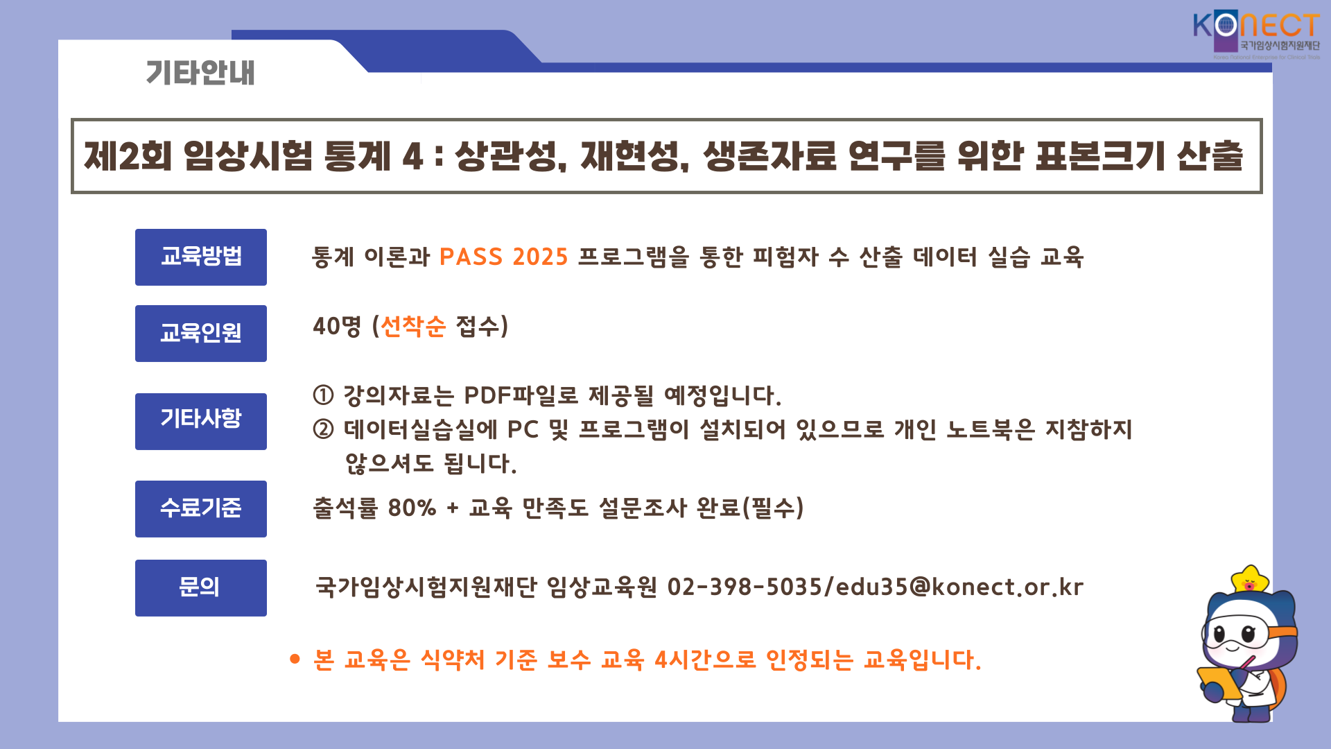 시험책임자(PI) / 시험자(SubI) / 관리약사 / IRB위원(의사) / IRB위원(의사 외) / 코디네이터(CRC) / 품질보증담당자(QA) / 모니터요원(CRA)보수