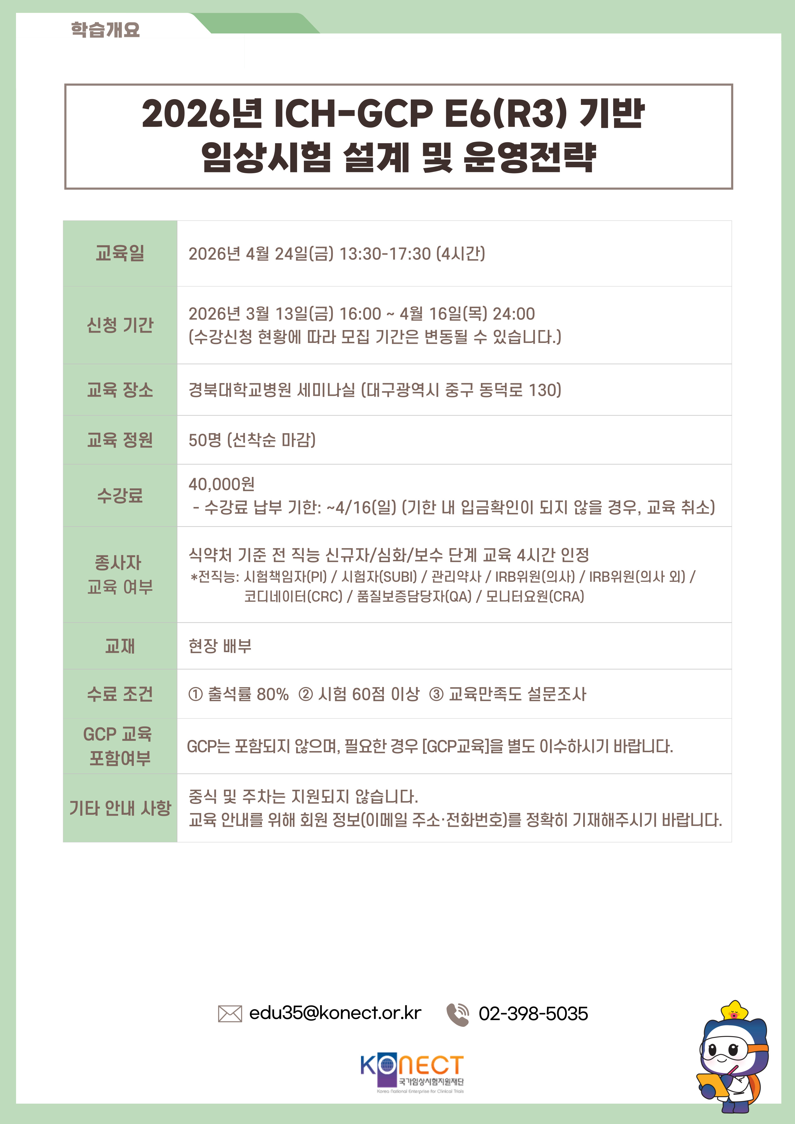 시험책임자(PI) / 시험자(SubI) / 관리약사 / IRB위원(의사) / IRB위원(의사 외) / 코디네이터(CRC) / 품질보증담당자(QA) / 모니터요원(CRA)신규자 /