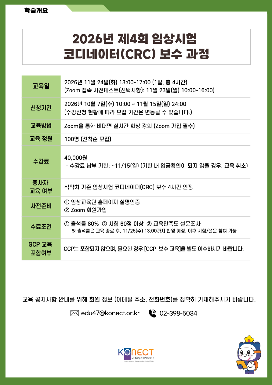 제4회 임상시험 코디네이터(CRC) 보수 과정 |