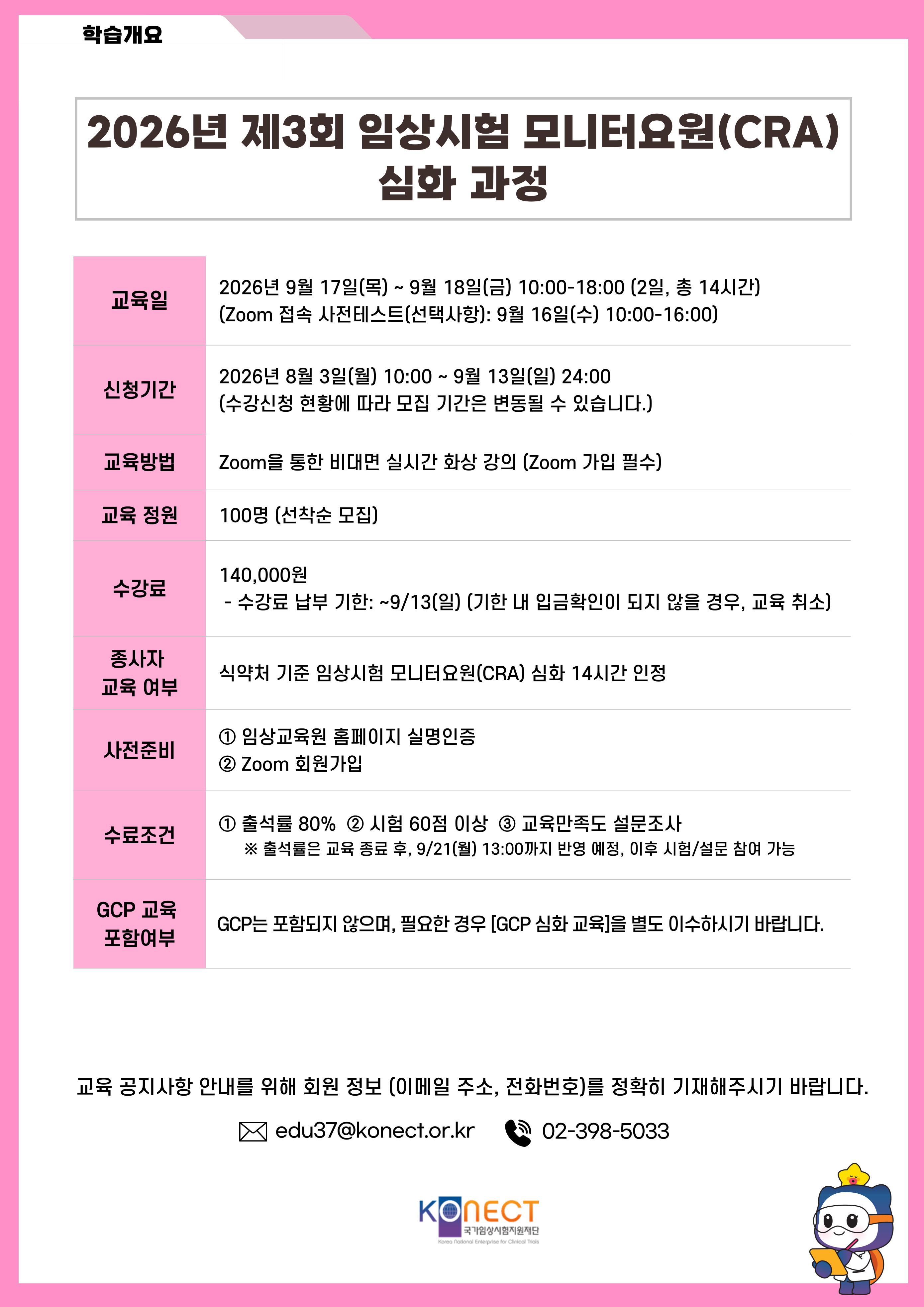 (시험) 제3회 임상시험 모니터요원(CRA) 심화 과정 |