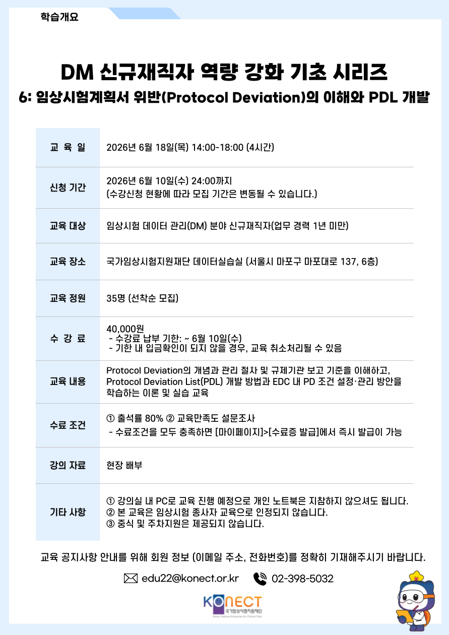2026년 DM 신규재직자 역량 강화 기초 시리즈 6: 임상시험계획서 위반(Protocol Deviation)의 이해와 PDL 개발