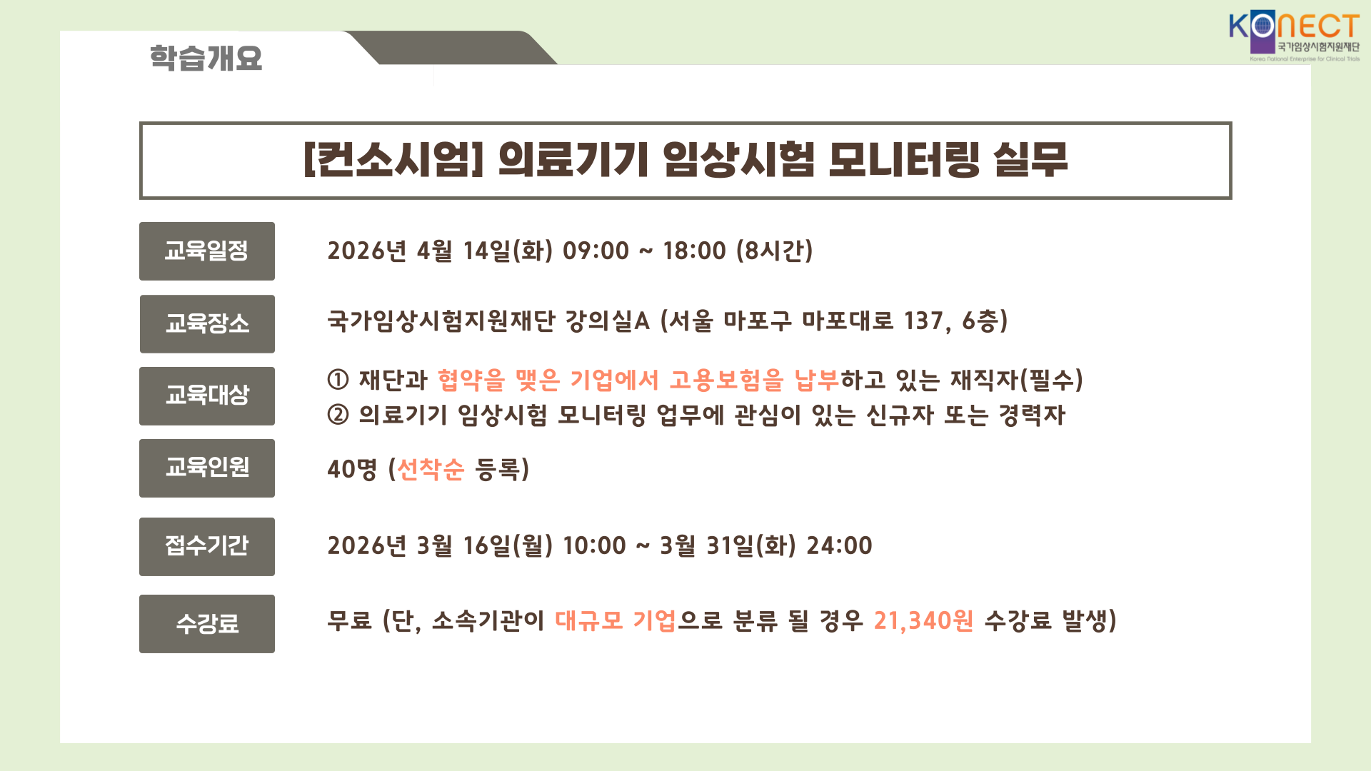 [컨소시엄] 의료기기 임상시험 모니터링 실무_시험 |