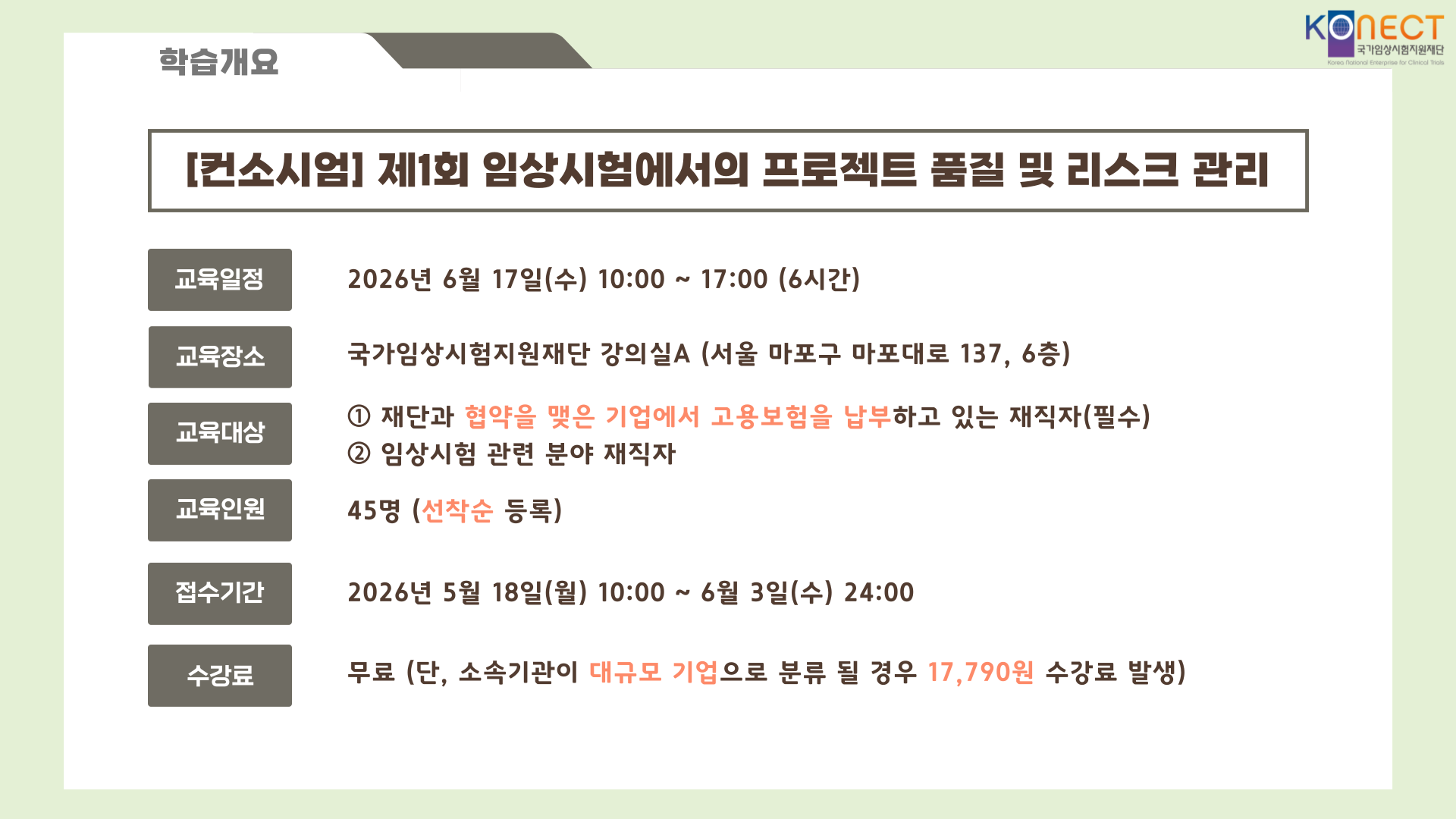 [컨소시엄] 제1회 임상시험에서의 프로젝트 품질 및 리스크 관리 |