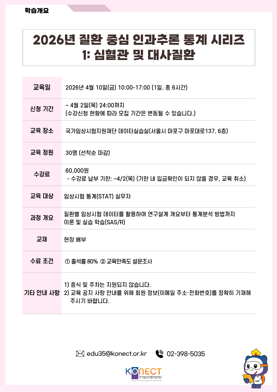 본 과정은「2026년 심혈관 질환 임상시험 최신동향」과정을 선수과목으로 수강하신 후 참여하시는 것을 추천드립니다.