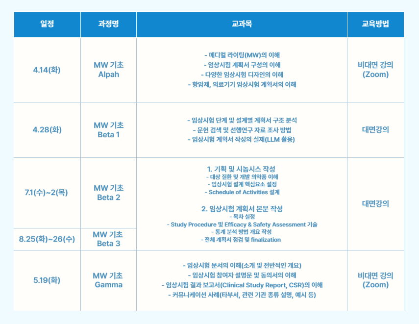MW 기초 실무 시리즈는 과정 간 연계성을 고려하여 Alpha, Beta, Gamma 순으로 수강하시기를 권장드립니다.