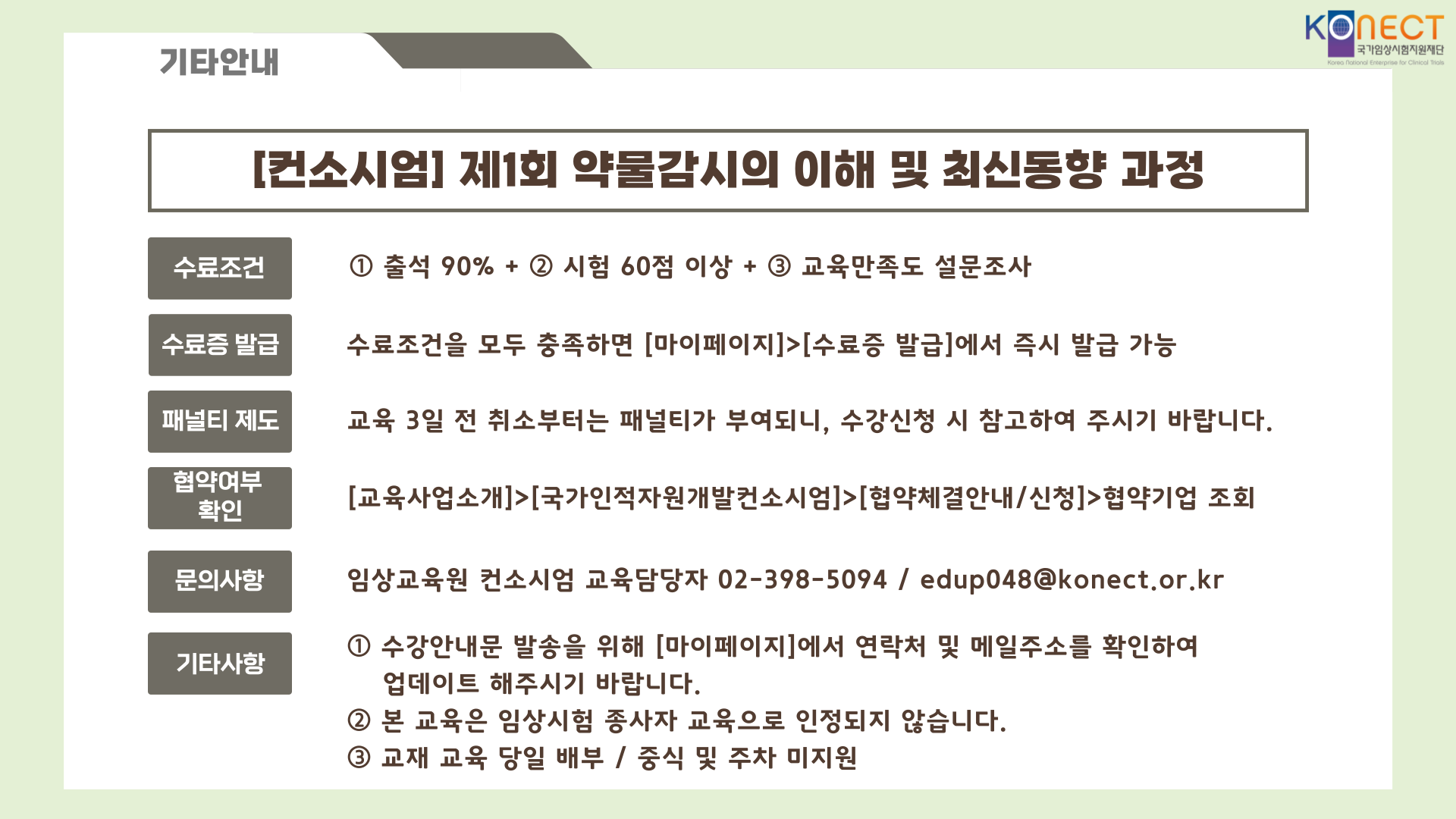 [컨소시엄] 제1회 약물감시의 이해 및 최신동향_시험 |