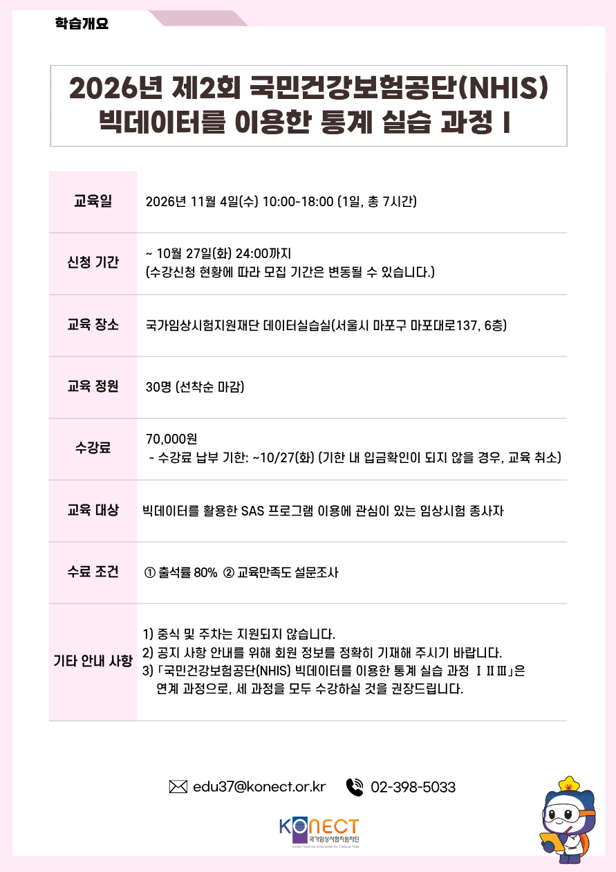 2026년 제2회 국민건강보험공단(NHIS) 빅데이터를 이용한 통계 실습 과정Ⅰ